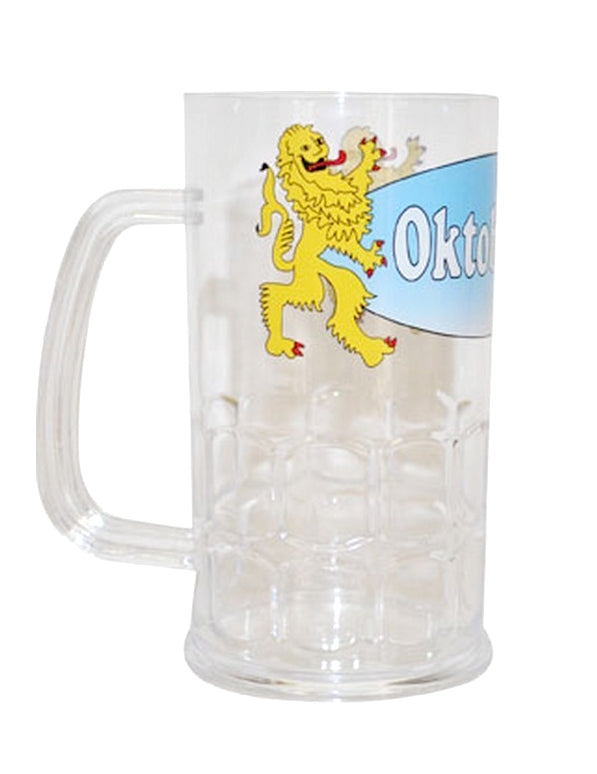 Acest sticlă din plastic măsoară 14 cm. O imprimare este prezentă în partea de sus a paharului cu doi lei galbeni. Sticla are o capacitate de aproximativ 50cl. Acest tocat de bere va fi perfect faimosul festival de bere!