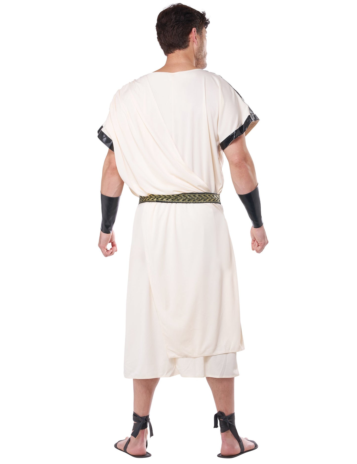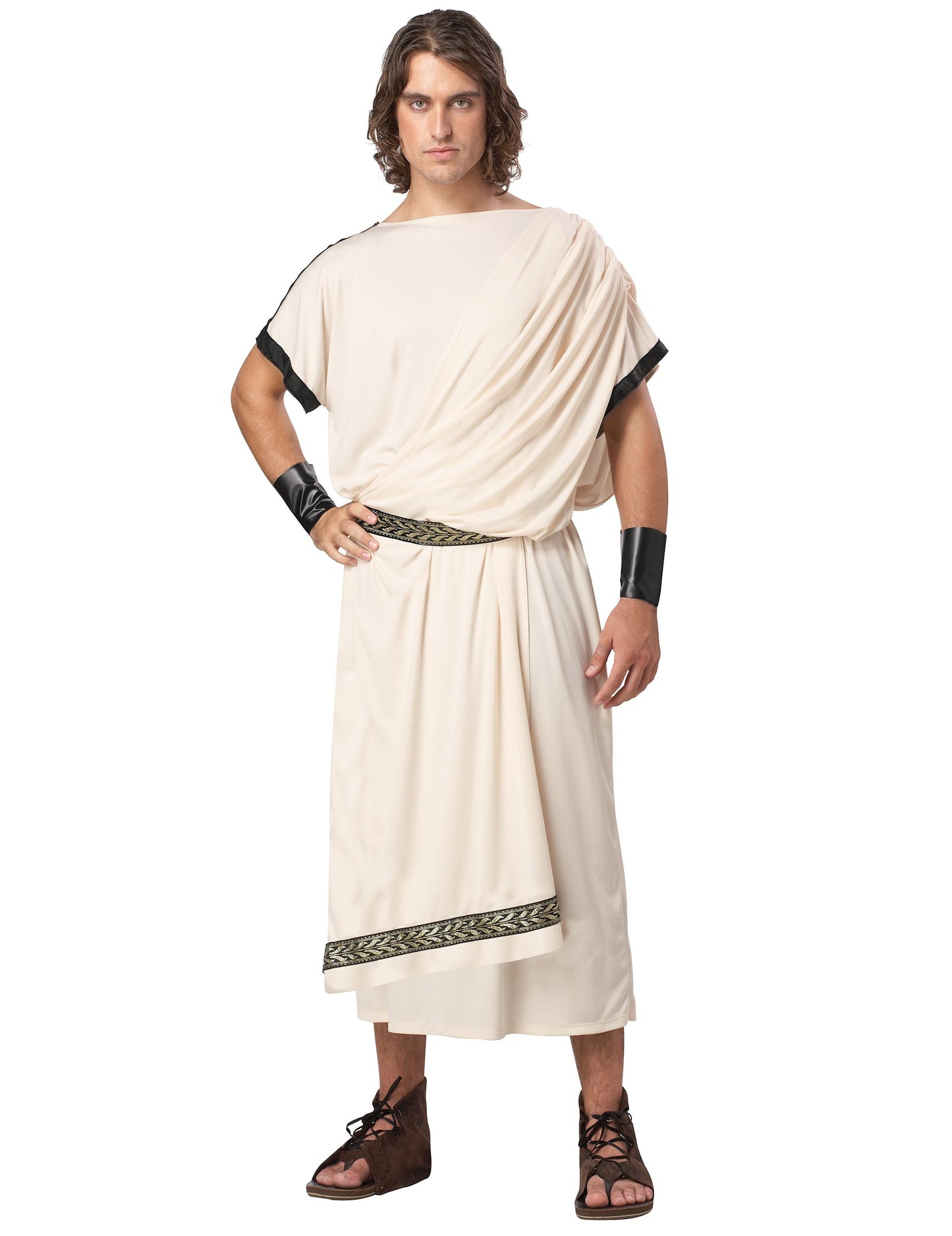 Această deghizare a lui Romain sau a grecescului pentru bărbați constă dintr -o toga albă ruptă pentru bărbați. Ea îți va drapa corpul. O centură de talie permite menținerea acestei toga. Această deghizare a zeului grecesc va fi perfectă pentru carnaval, un an nou deghizat sau o seară pe tema antichității.