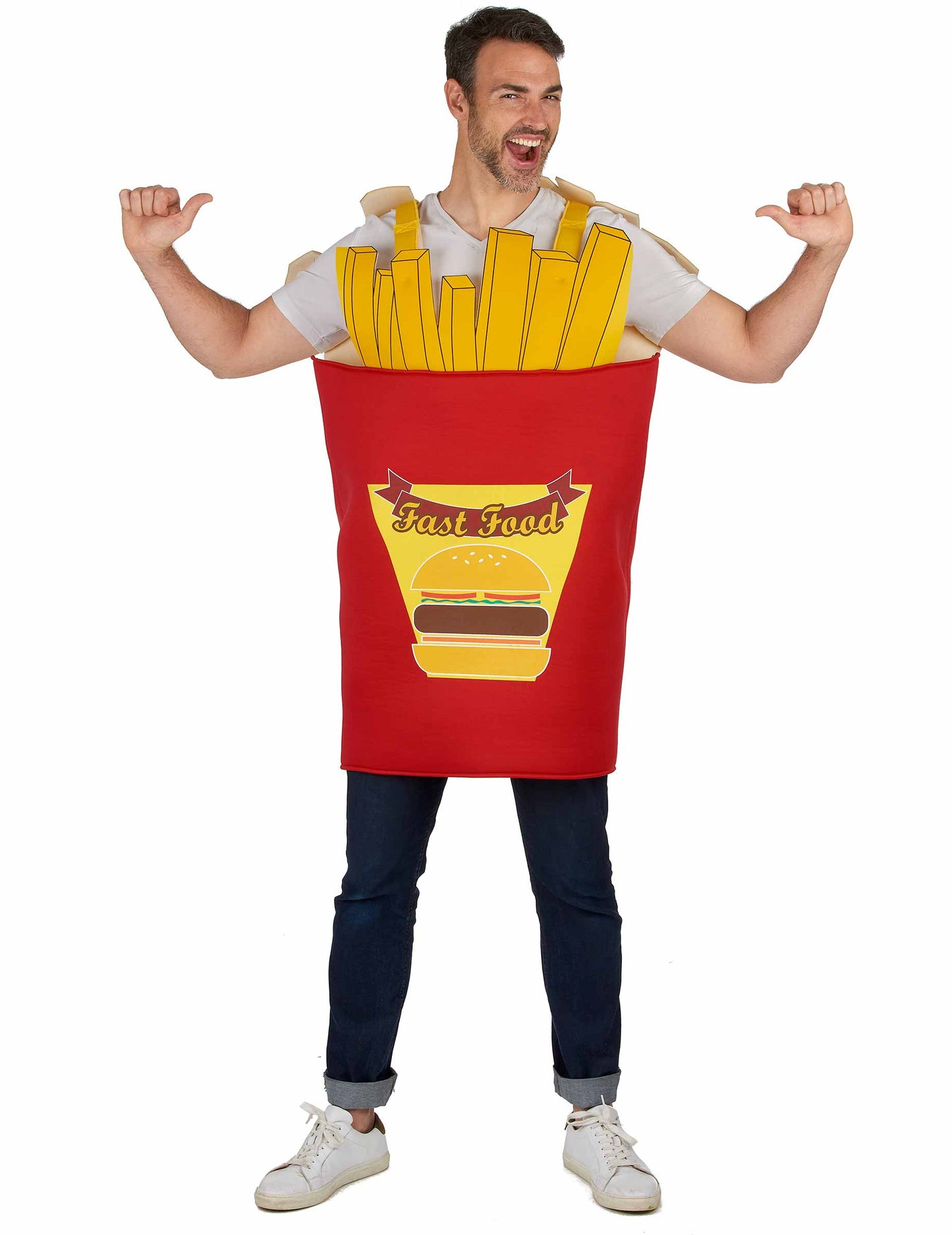 Această deghizare a coroanei pentru cartofii prăjiți pentru adulți constă dintr -o tunică de spumă flexibilă, atașată la umeri și reglabilă datorită zgârieturilor. Partea frontală este un logo superb de hamburger, cu „fast -food” scris, care stabilește tonul deghizării. Cartofii prăjiți iese din corn atât în față, cât și în spate. Cu un acolit deghizat în burger, de exemplu, nu veți reuși să faceți perechea în timpul unei petreceri de costume.