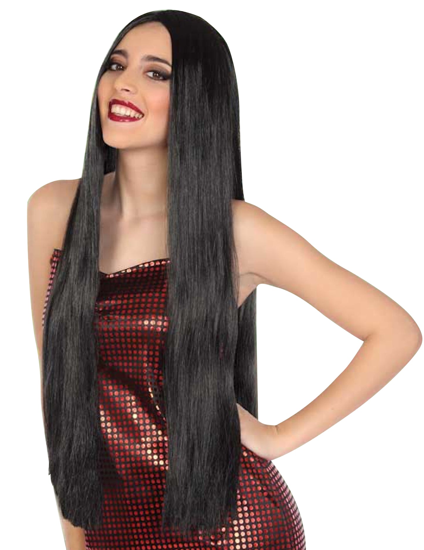 Această perucă pentru femei este culoarea neagră. Are 80 cm lungime, părul este foarte abrupt. Este accesoriul ideal pentru a -ți completa costumul de vrăjitoare pentru un spectacol, o seară deghizată sau de Halloween.