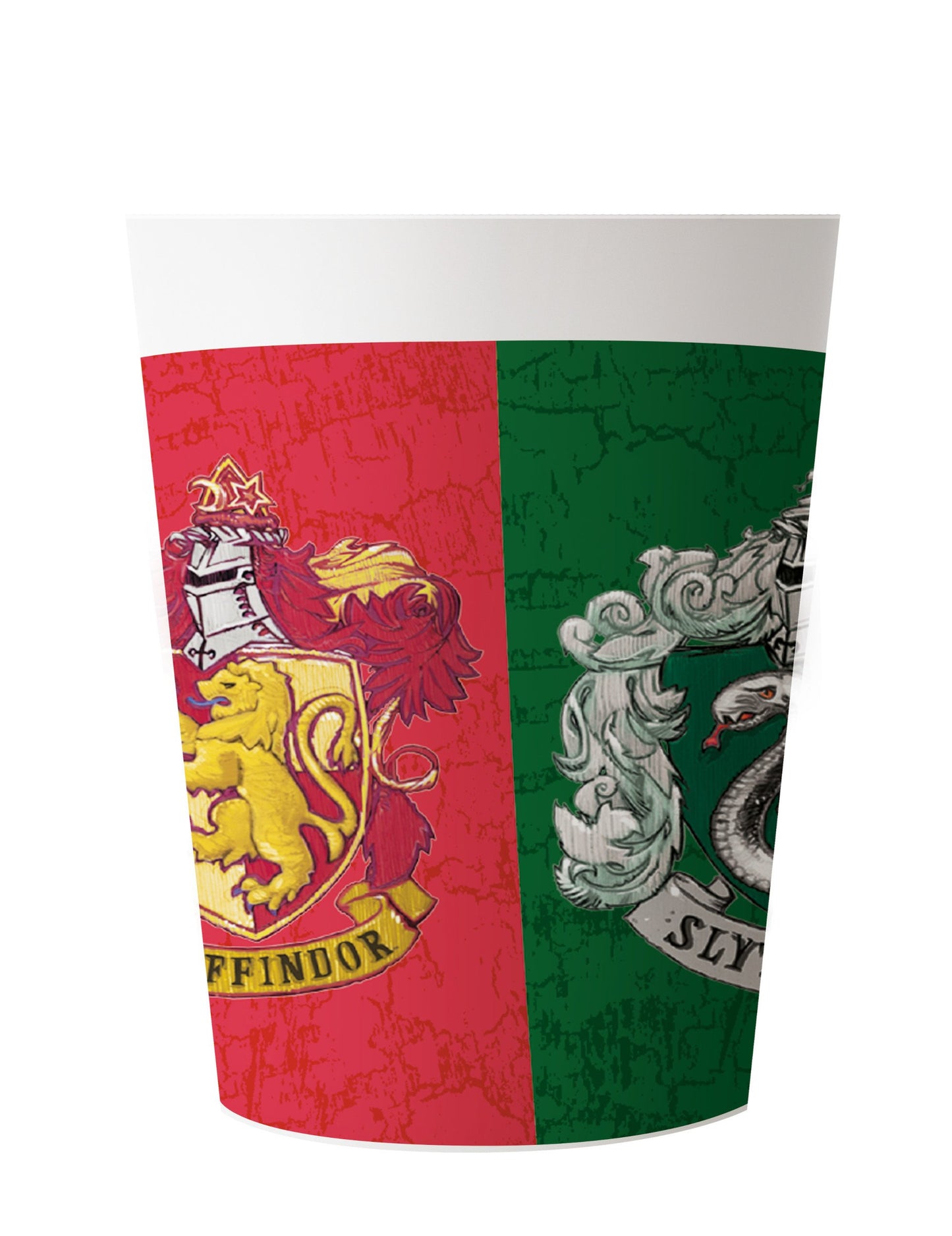 Aceste 2 căni de plastic Harry Potter sunt reutilizabile. Sub licența oficială Harry Potter, acestea sunt în imaginea lui Slytherin și Gryffindor cele două celebre case Hogwarts. Pe de o parte, stema Slytherin este reprezentată pe un fundal verde, în timp ce pe de altă parte este reprezentată stratul lui Gryffindor cu leul său maiestuos. Au o capacitate de 23 Cl. Acest lot de Cupe Harry Potter va oferi perfect decorația ta de masă în timpul unei gustări de naștere pe tema Harry Potter!