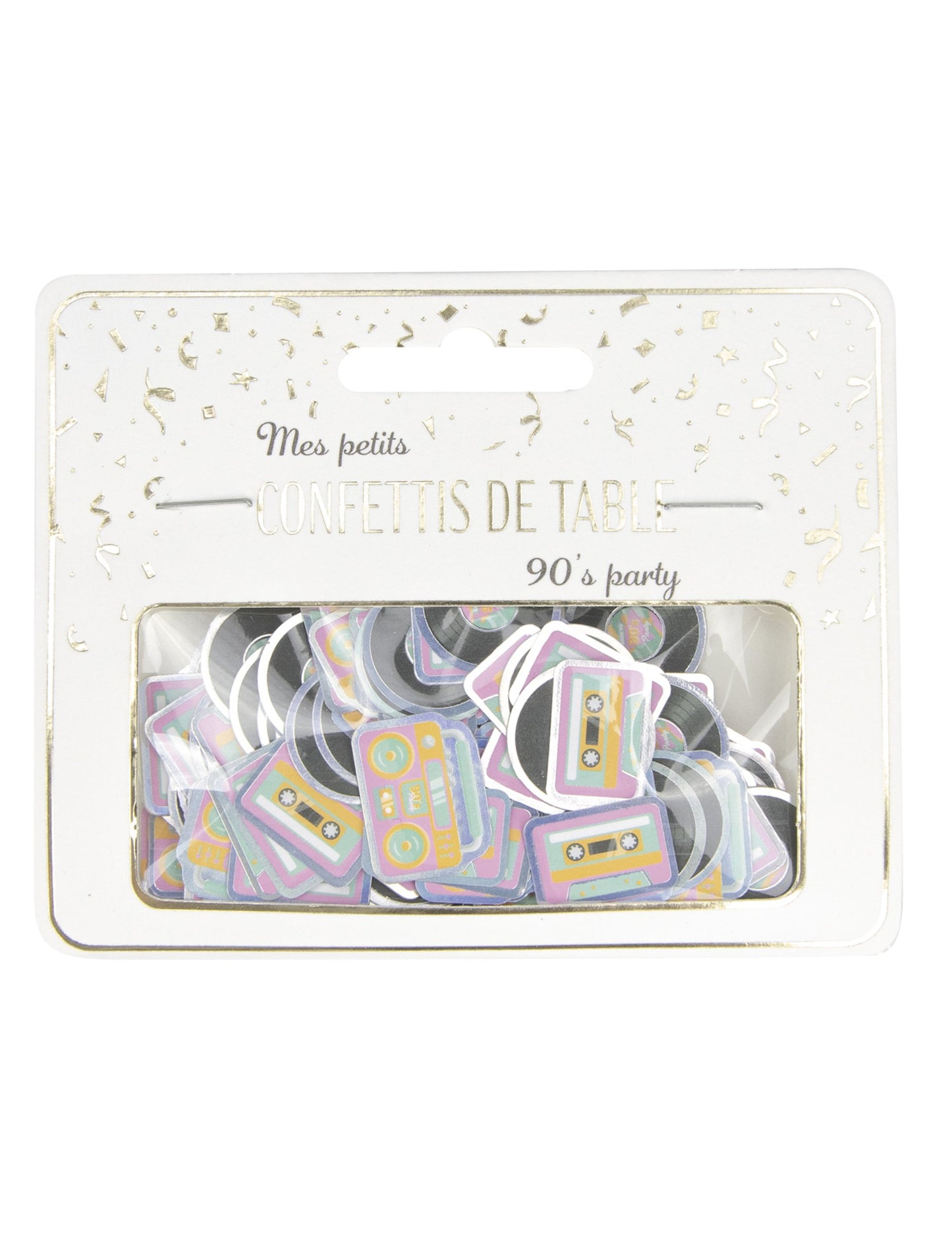 Acest lot este format din diferite confetti de masă de hârtie. Pe tema anilor 90, veți găsi confetti în formă de vinil și alții în formă de casete. Faceți o senzație pentru ziua dvs. de naștere cu aceste confetti de masă pe tema 90!