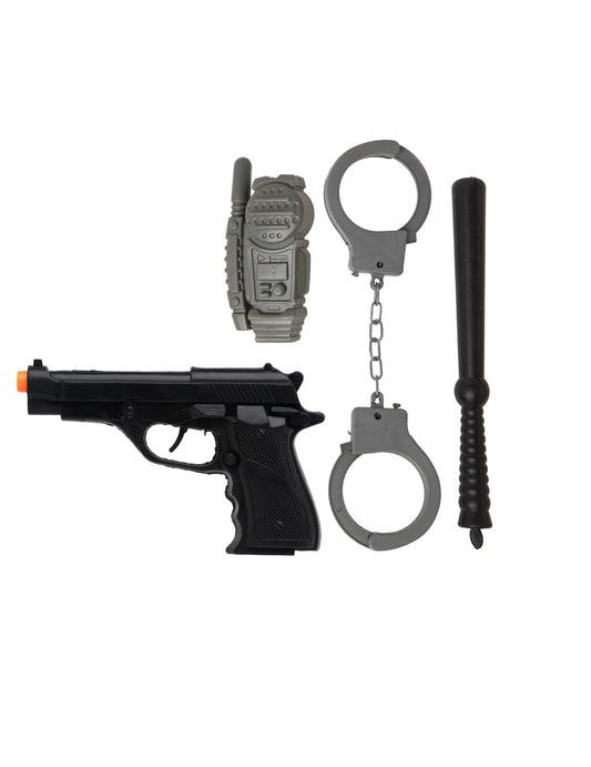 Inclus : Cătușe , Pistol , Stație de emisie-recepție falsă , Baghetă