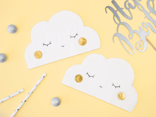 20 de șervețele mici în hârtie de aniversare fericită alb și auriu metalic 25 x 25 cm