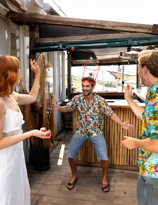 Inclus : 1 Bandeau avec filet de basket , 10 boules rouges , 10 boules blanches