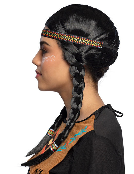 Peruca lungă neagră cu fitiluri roșii ale femeilor