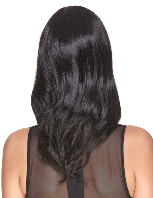 Peruca neagră cu breton și femei ondulate