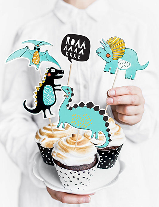 5 toppers tort în dinozauri albaștri 10,5 cm - 20 cm