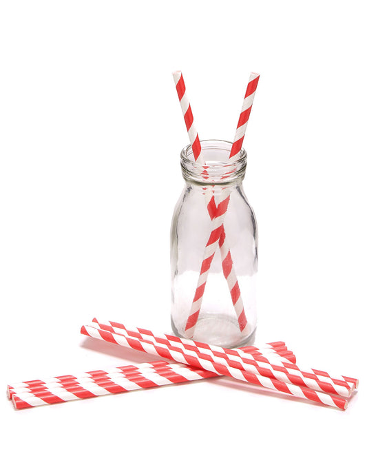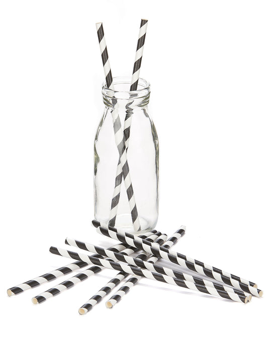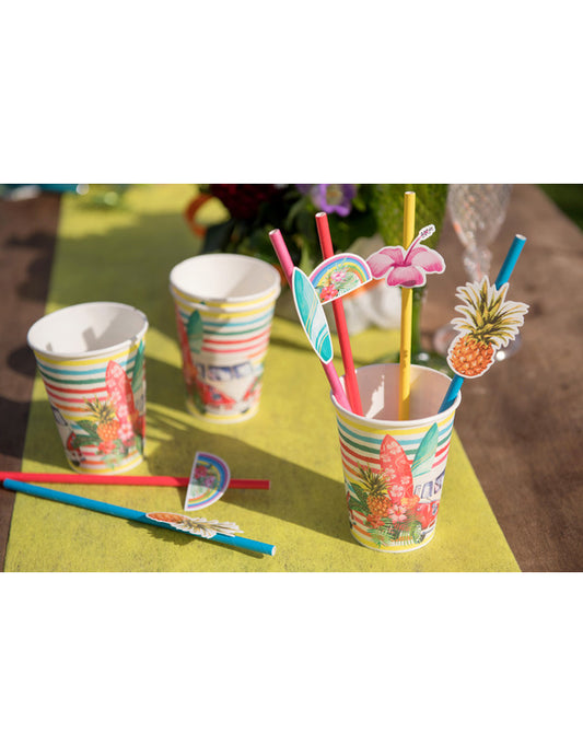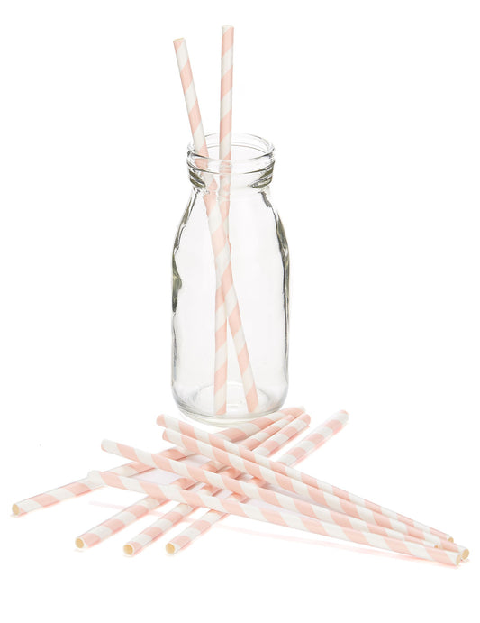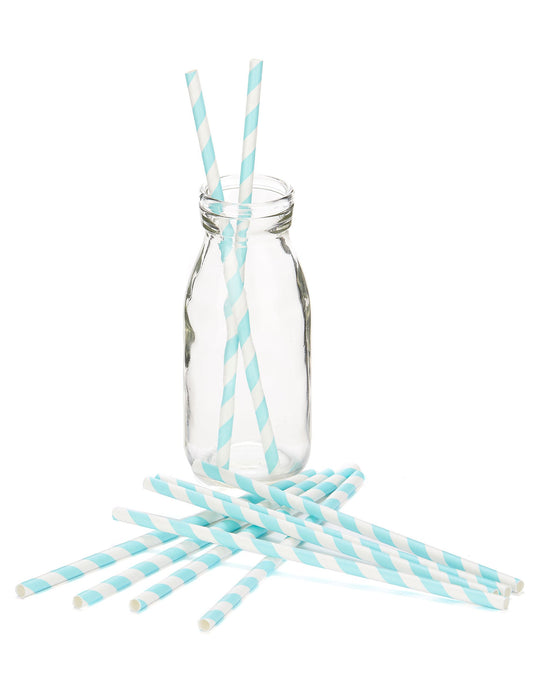 Promoție10 pailles en carton rayées blanches et menthe 19,5 cm pour fête