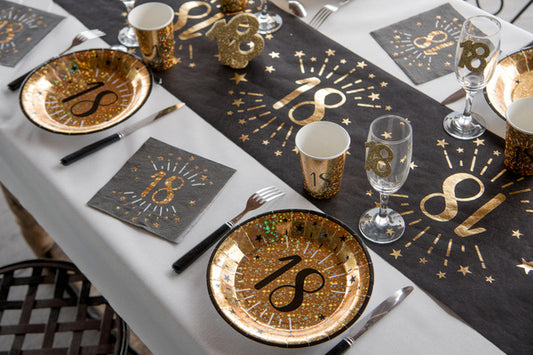 10 șervețele de hârtie La mulți ani, 18, negre și aurii, 33 x 33 cm stele aurii