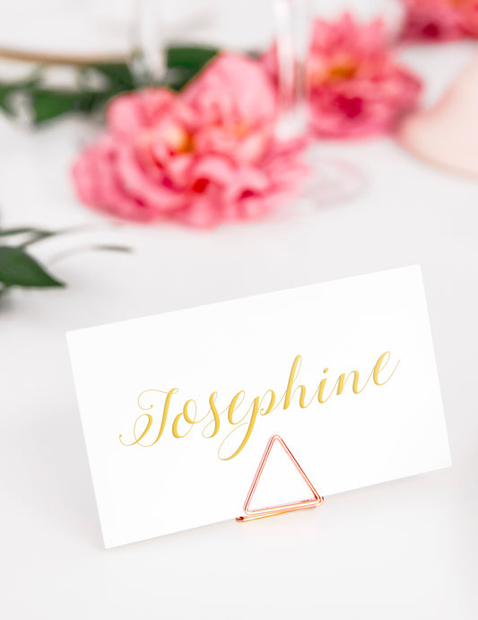 10 suporturi pentru cartonașe de loc triunghiulare aurii 2.3 cm metal