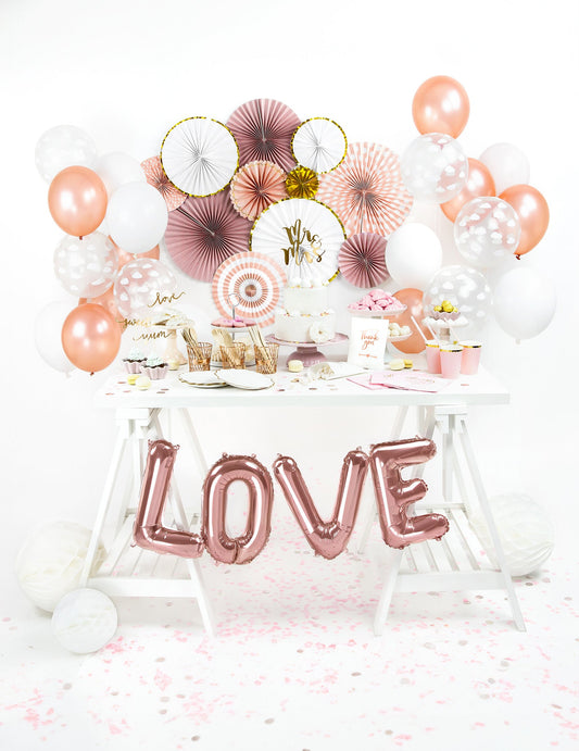 - Nunti : cu baloane albe, fildeș sau transparente umplute cu confetti.
