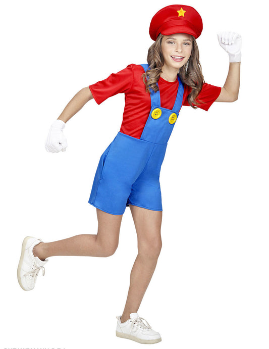 EpuizatCostum de instalator cu pantaloni scurți roșii pentru fată