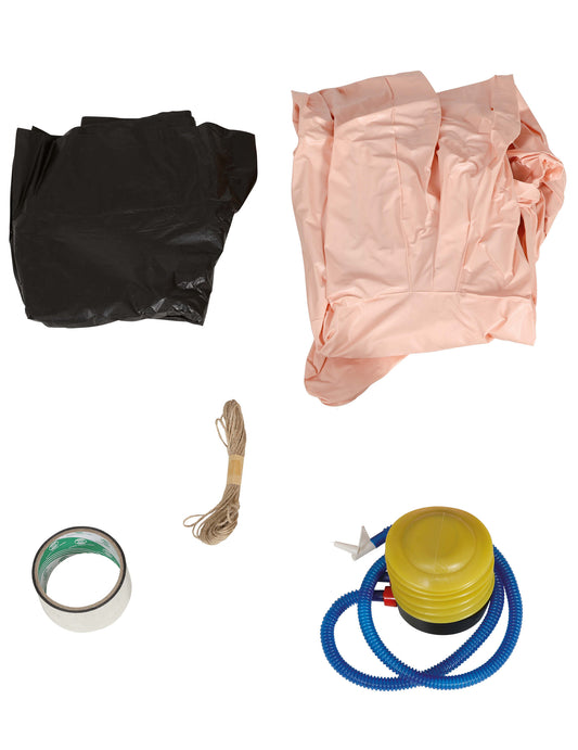 Inclus: cadavru gonflabil fals, pungă de plastic, bandă adezivă, pompă, șir
