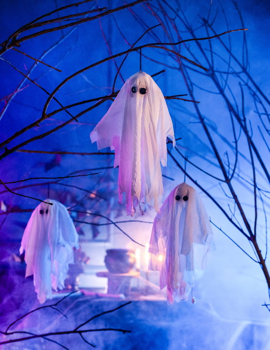 - Fantome plutitoare, vrăjitoare în mărime naturală și copaci bântuiți pentru un efect uimitor.