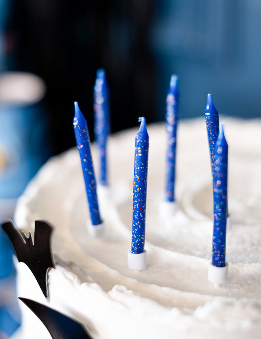 12 lumânări de aniversare albastre cu sclipici 7,5 cm pentru tort