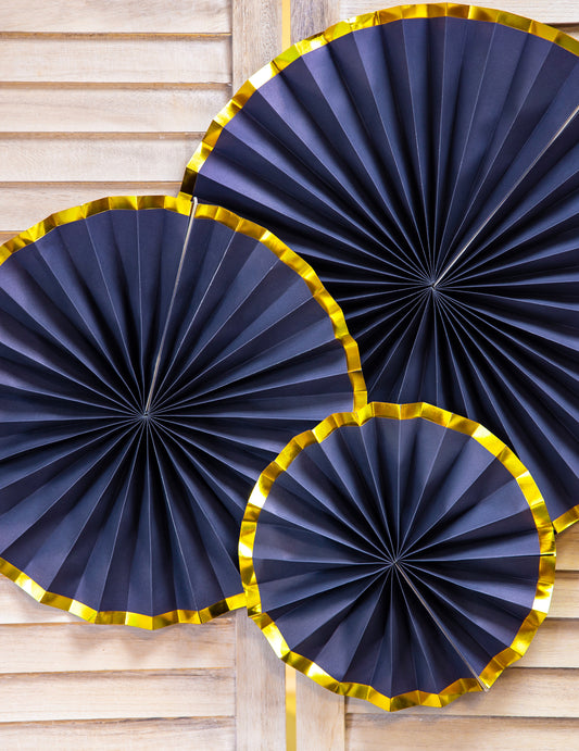 3 rozete din carton albastru închis și auriu 23, 32 și 40 cm de agățat
