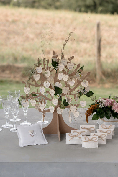 Arbre à vœux en bois avec 50 cœurs mariage 48 x 40 cm livre d'or