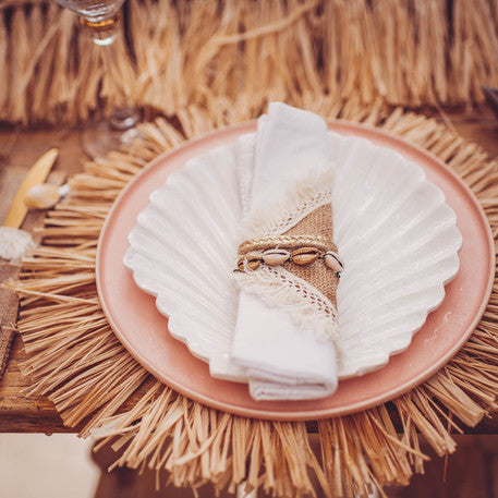 PromoțieCentru de masă Bali din rafie rotund 36 cm cu franjuri