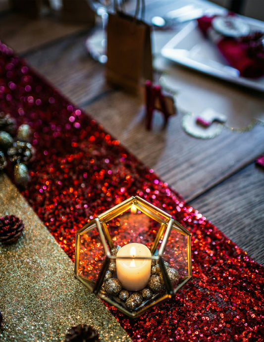 Chemin de table à paillettes rouges 28 cm x 3 m brillant