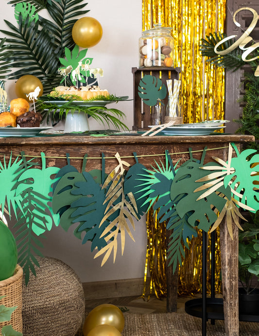 Garland de carton frunze tropicale aurii și degradat din verde 2 m