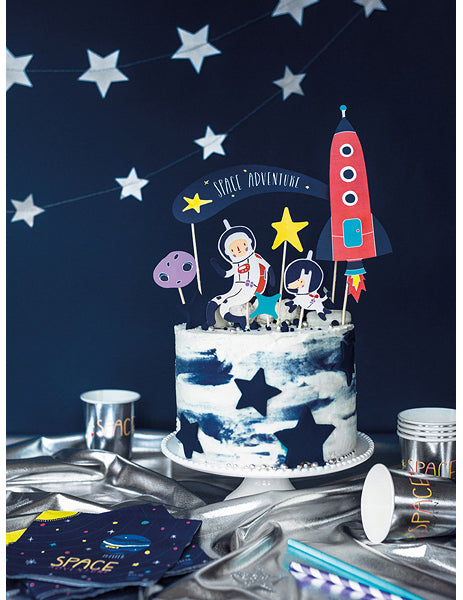 7 Toppers pentru tort în carton Space Adventure 9,5 - 24,5 cm