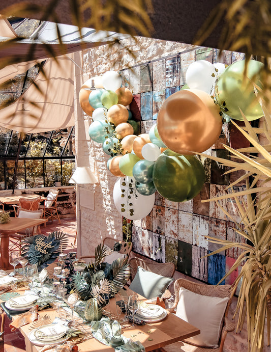 Inclus: 4 45 cm baloane, 36 25 cm baloane, 30 12 cm baloane, 4 foi de palmier, 6 ierburi Pampe, 1 panglică de plastic, 1 Roll of Cusături