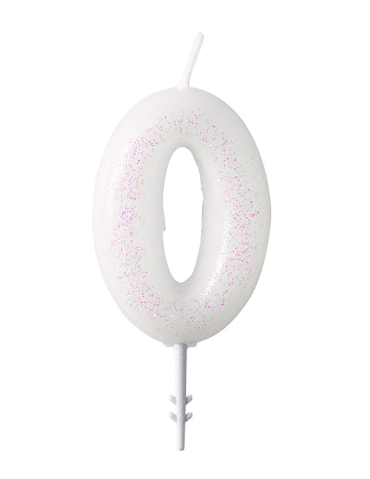 Lumânare albă cu figură albă cu sclipici de 6,5 cm