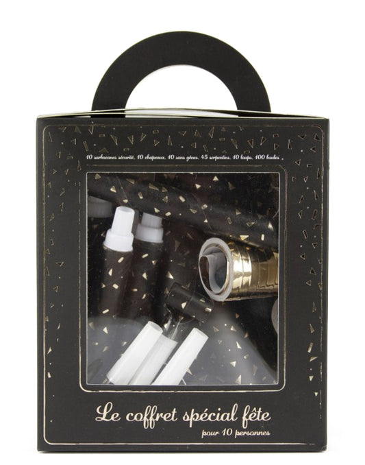 Set de bursă de petrecere neagră și auriu 10 persoane