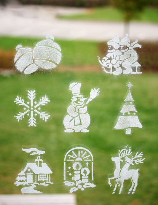 Inclus : 1 spray fals de zăpadă, 8 stenciluri