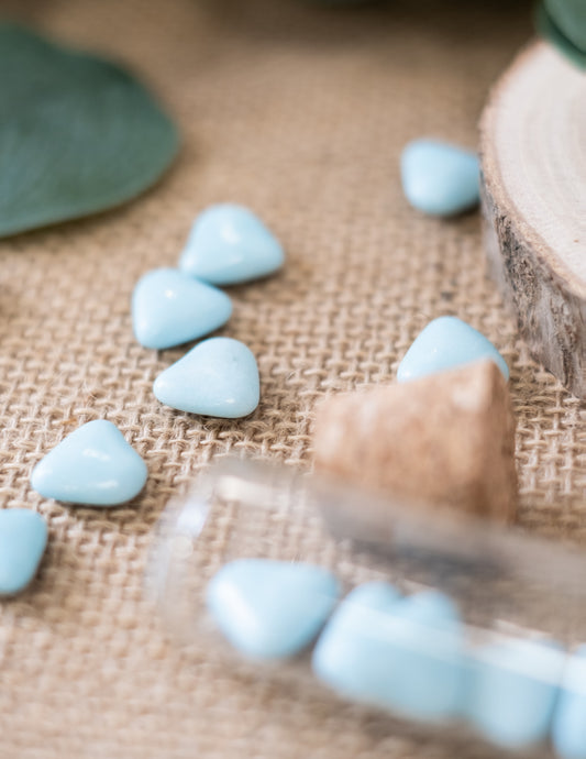 Bomboane mini inimă din ciocolată culoare albastru deschis 250 gr pentru împărtășanie