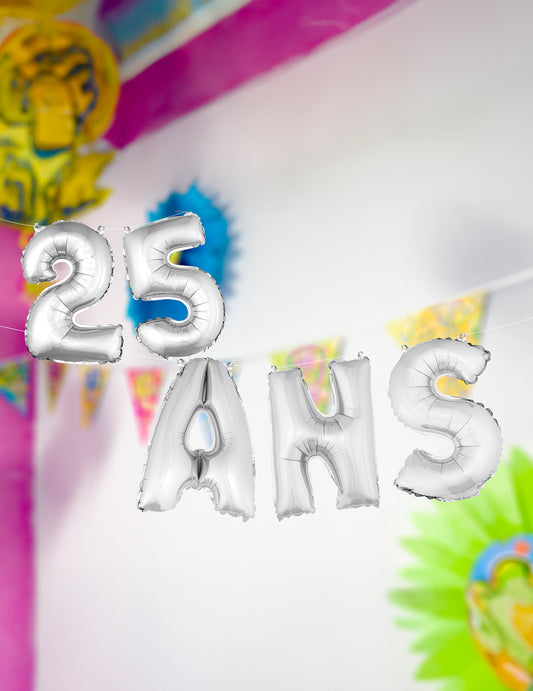 Baloane din folie argintie cu literele „ani” (36) cm pentru decorare