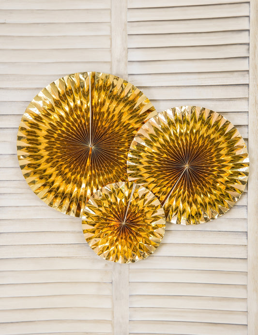 3 rozete din hârtie aurită, mărimile 40, 32 și 23 cm pentru o decorațiune elegantă