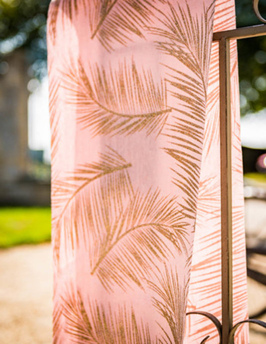 Covor de masă din in roz pudrat cu ferigi aurii 28 cm x 5 m tropical