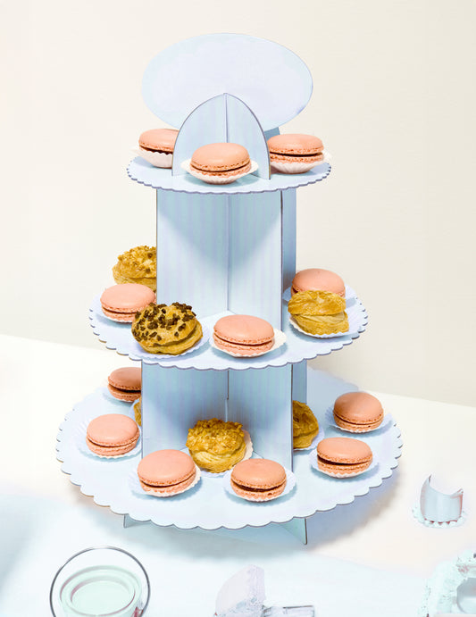 Suport pentru brioșe din carton alb și albastru, 30 x 42 cm pentru petrecerea de baby shower