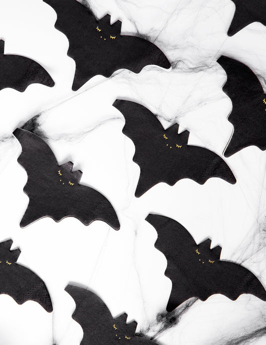 20 șervețele de hârtie negre și aurii în formă de liliac, 16 x 9 cm pentru Halloween