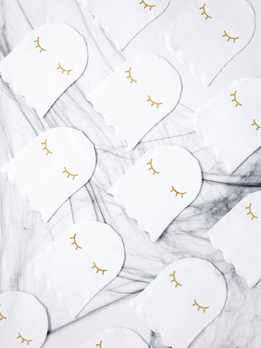 20 șervețele de hârtie fantomă albe și aurii 11 x 14 cm pentru Halloween