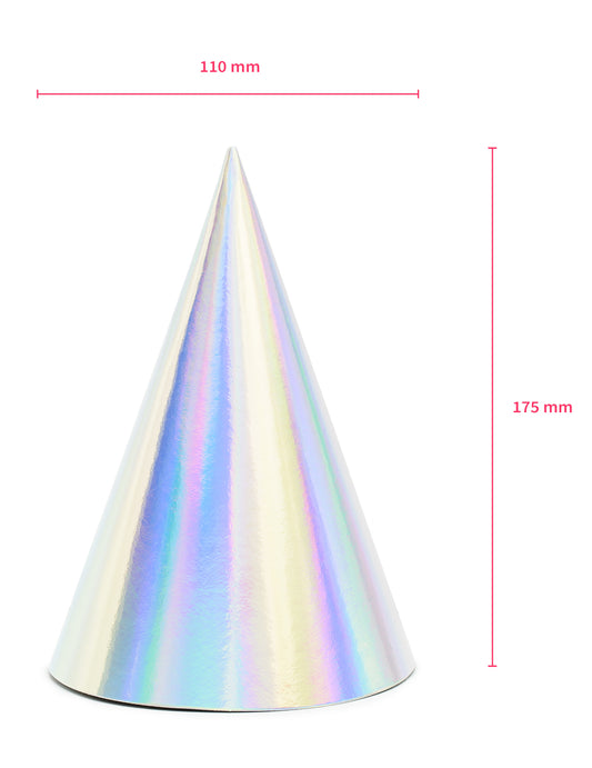 6 pălării de petrecere din carton iridescent, 10 x 16 cm cu elastic