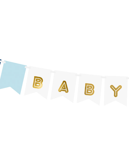 Ghirlandă din carton pentru bebeluși, albastră și metalizată, 15 x 160 cm cm cu fanioane