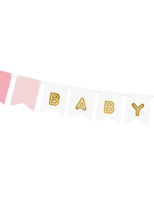 EpuizatGhirlandă din carton pentru fetițe, roz și metalizat, 15 x 175 cm pentru petrecerea de baby shower
