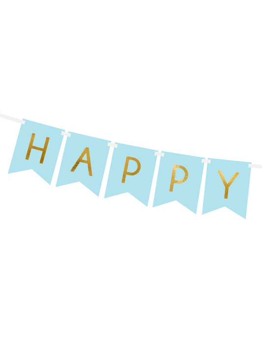 Ghirlandă din carton albastră și metalică cu mesaj de la mulți ani, 15 x 175 cm cm de aur