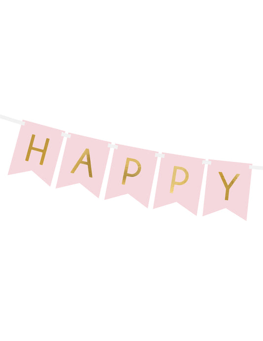 Ghirlandă de carton roz și auriu „La mulți ani”, 15 x 175 cm pentru ziua de naștere