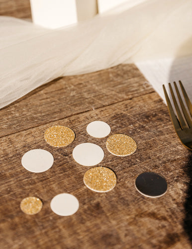 Confeti de masă fildeș și sclipici auriu pentru o decorare elegantă