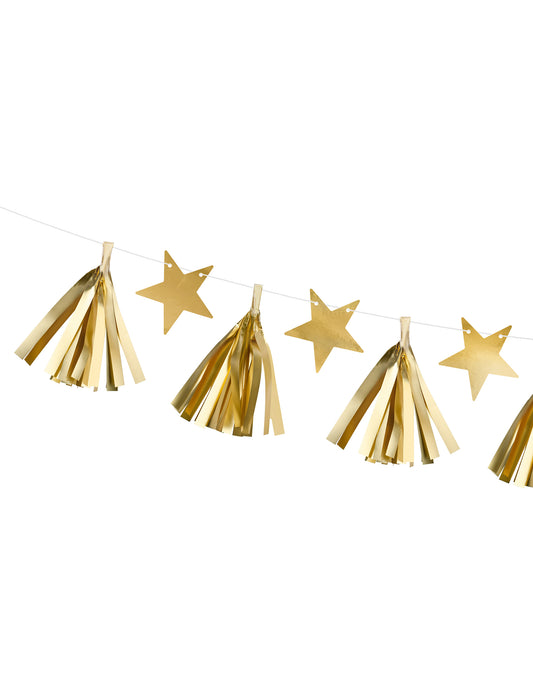 Ghirlandă de hârtie cu ciucuri aurii și stea de asamblat