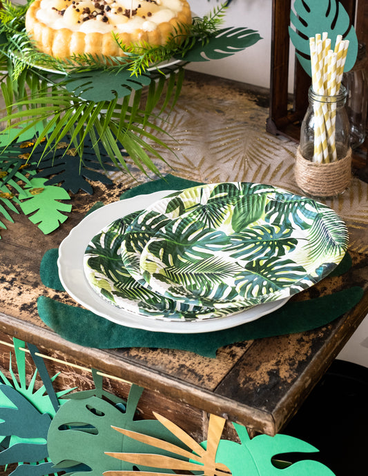 Epuizat8 farfurii de carton verde tropical 23 cm frunze de palmier