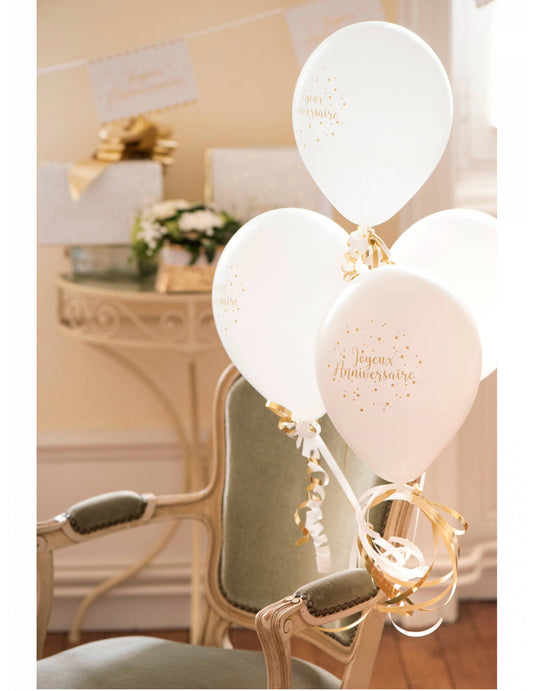 Epuizat8 baloane din latex albe și aurii metalice cu mesajul „La mulți ani”, 23 cm balon