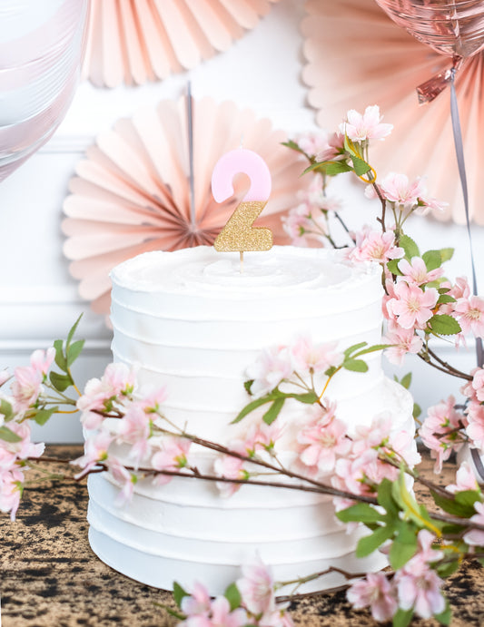 EpuizatLumânare cu sclipici roz și auriu numărul 2 pe băț, 13,8 cm pentru tort