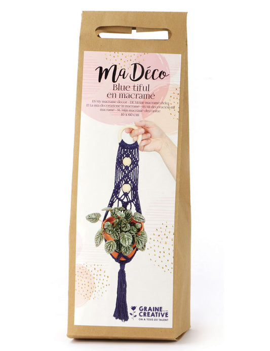 EpuizatSet plante suspendate macrame, albastru, 10 x 60 cm cm cu ghiveci de teracotă