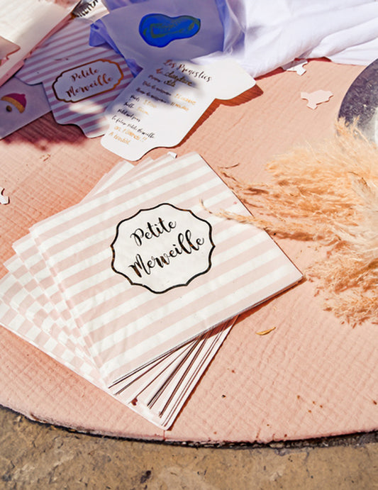 Epuizat16 șervețele mici de hârtie cu dungi roz, 33 x 33 cm de aur