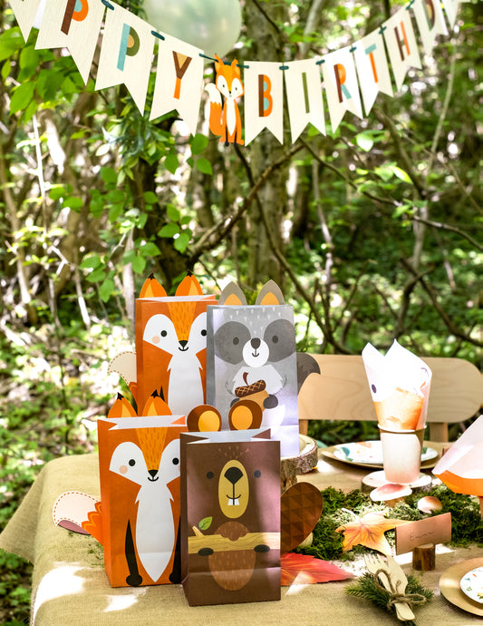 Epuizat8 pungi cadou din hârtie cu design cu animale din pădure, 11,4 x 20 cm vulpe castor